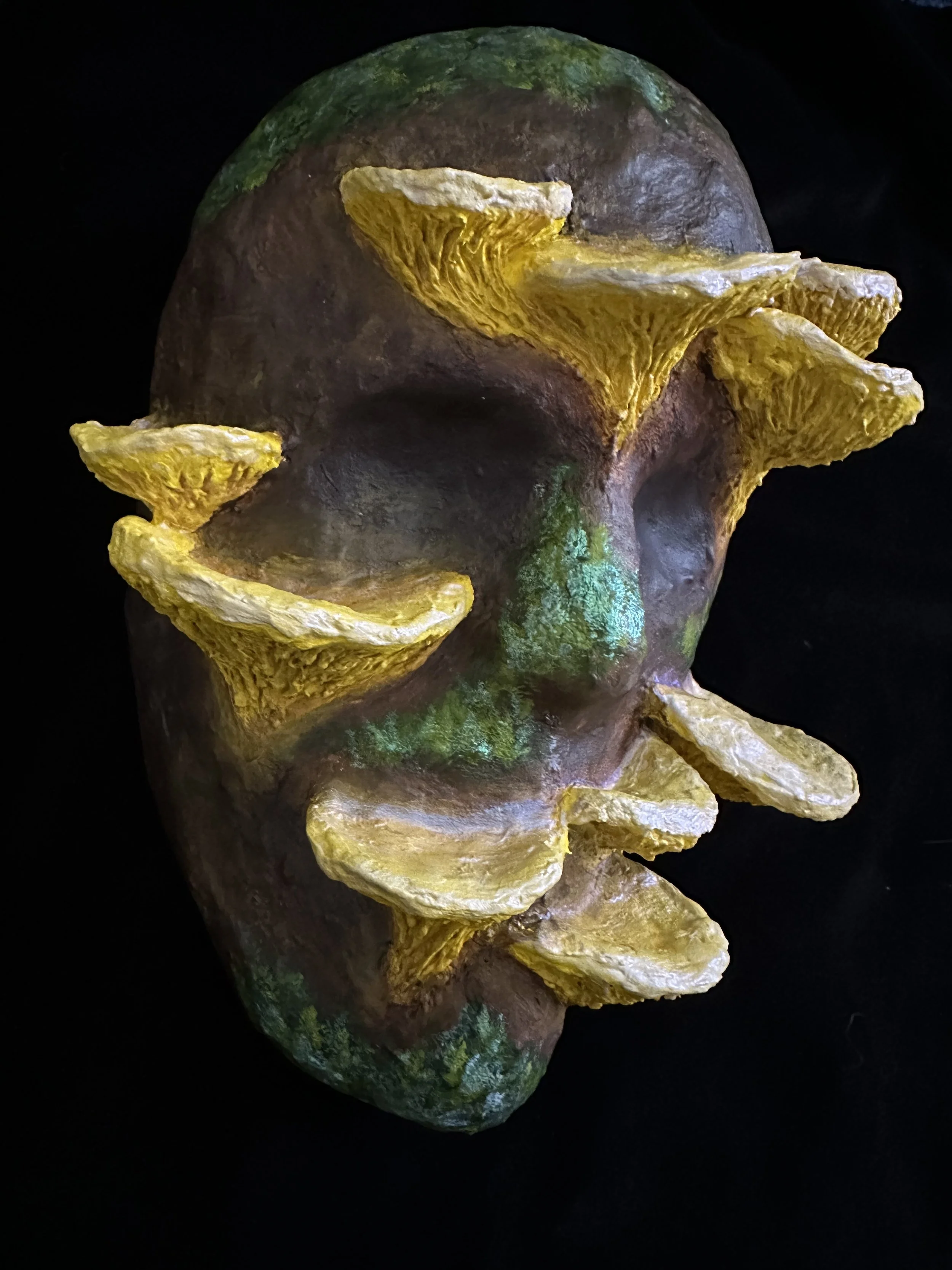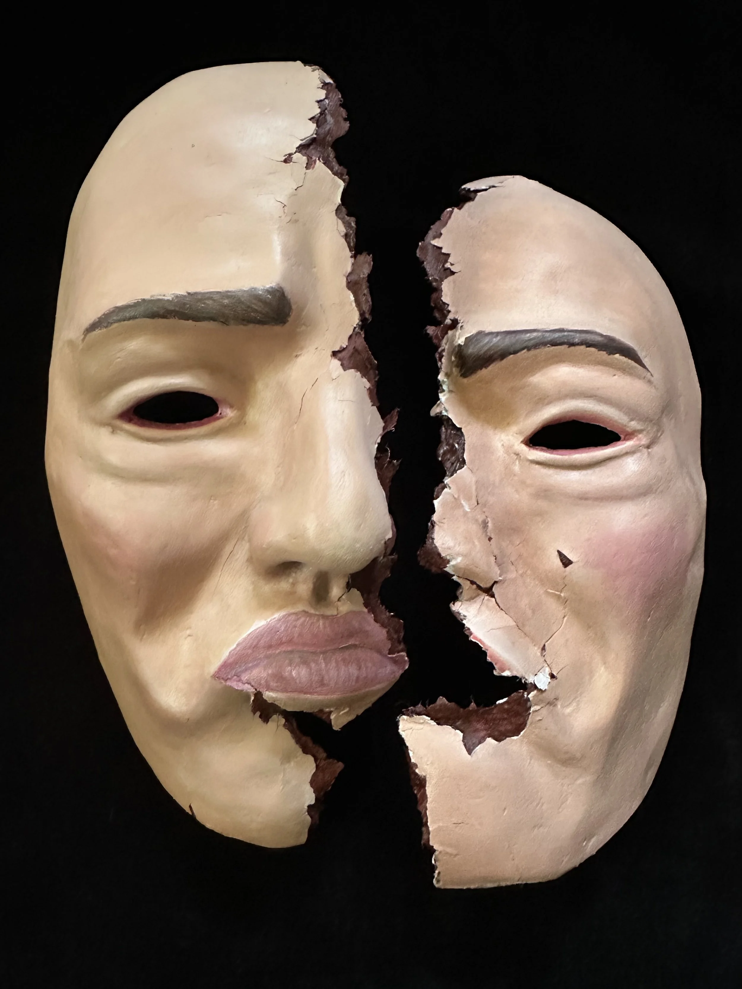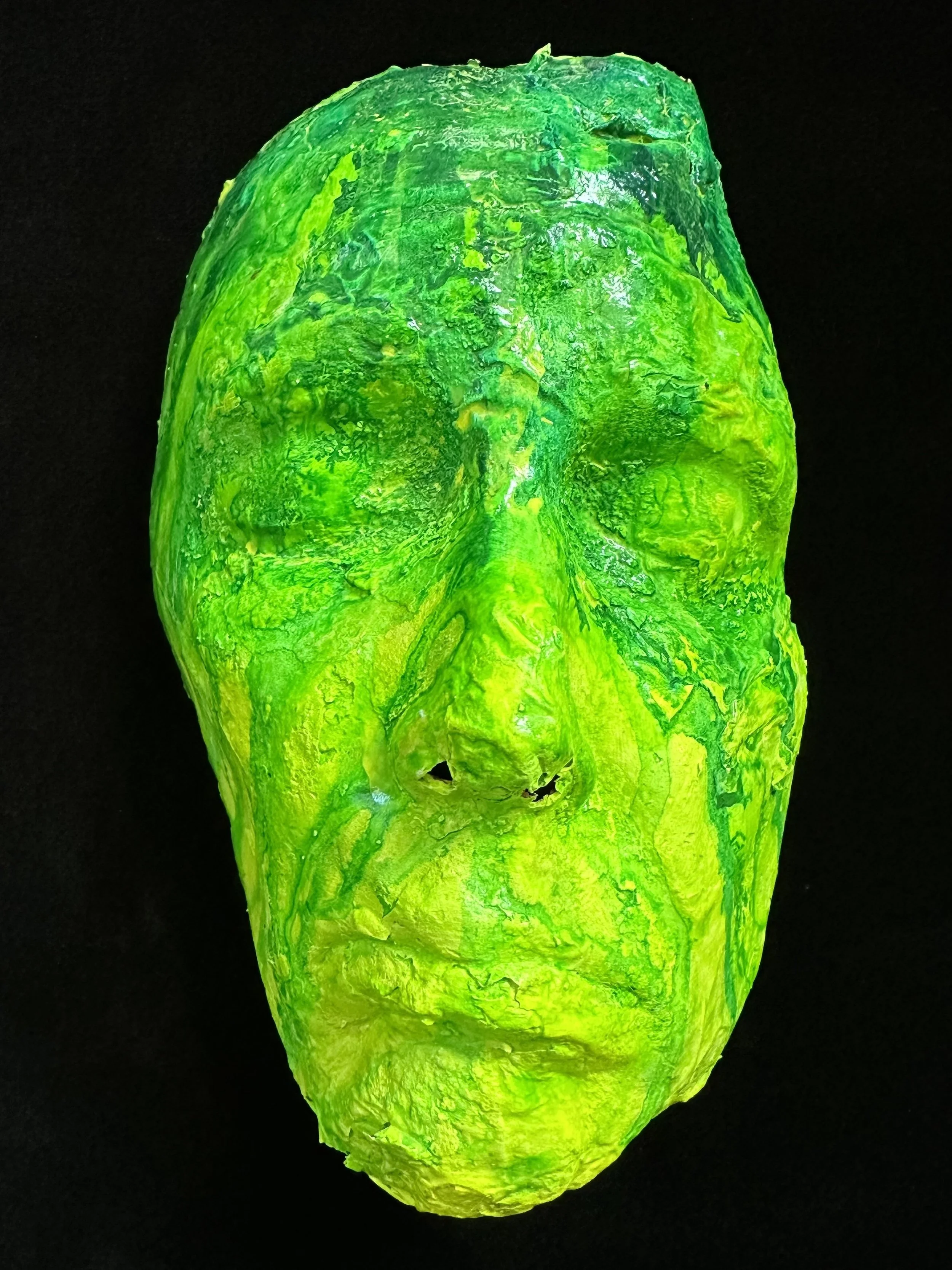 Facing Death is a collection of works which began in 2021. The artworks are produced in various media, including paintings, shadow boxes, and multimedia masks. These “death masks” are created in different forms and styles to explore translations of my face. While each piece is produced, I reflect on my own mortality. My creative approach reflects the journey of life. It ebbs and flows in a continual search for meaning and enjoyment in the process as opposed to the outcome. I believe that through the inevitability of death, life is endowed with meaning and mine has been discovered in making art.